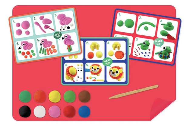 Become a master sculptor and creative genius with Clay & Play! Each set comes with 6 pots of 10 different air dry clay colours, 5 double-sided instruction cards (taking you step-by-step through the creative process), a brightly coloured silicone mat and a handy wooden stylus tool for crafting.