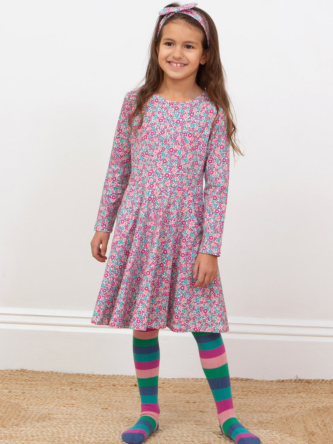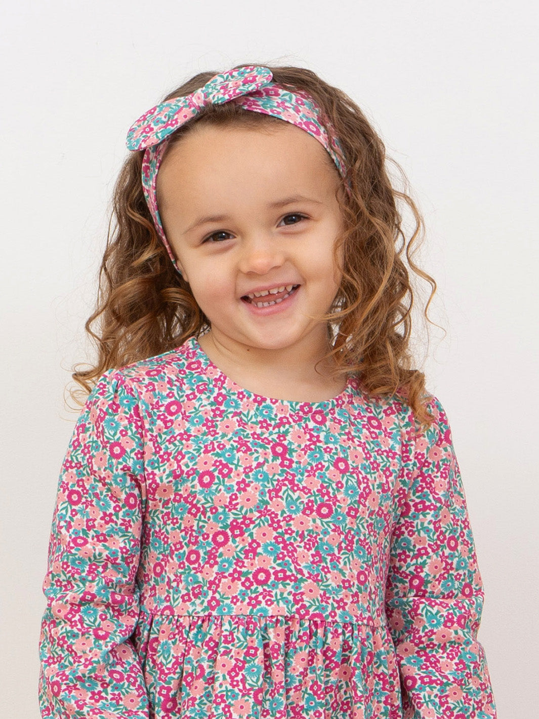 This super soft and comfy stretch jersey hairband in the pink Ditsy Tales print, adds the perfect finishing touch to any Kite outfit and makes a great little gift too.