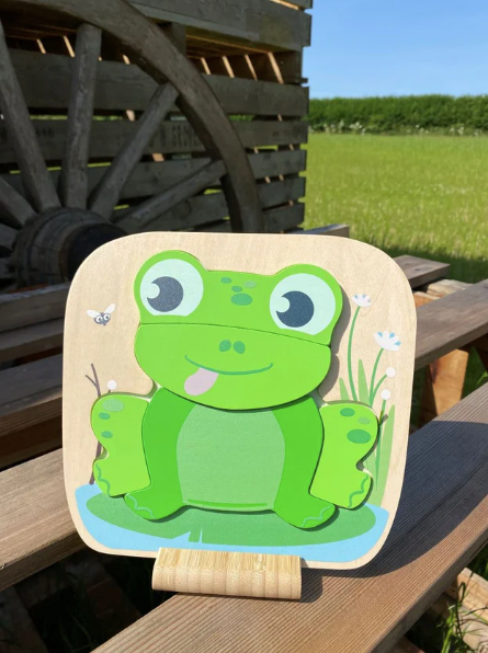 Babies and toddlers will love putting together this delightful 5 piece frog puzzle. It is great for working on fine motor skills, encourages hand eye coordination and confidence in young children. This puzzle has a beautiful and bold design that will suit any nursery or playroom.