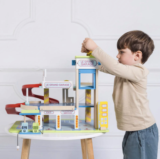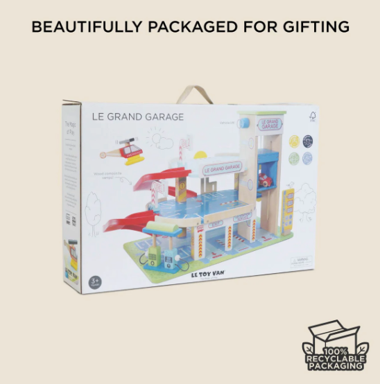 An exciting three storey wooden toy garage made for exploratory fun. Le Grand Garage is a real showstopper and is recommended by The Good Toy Guide.