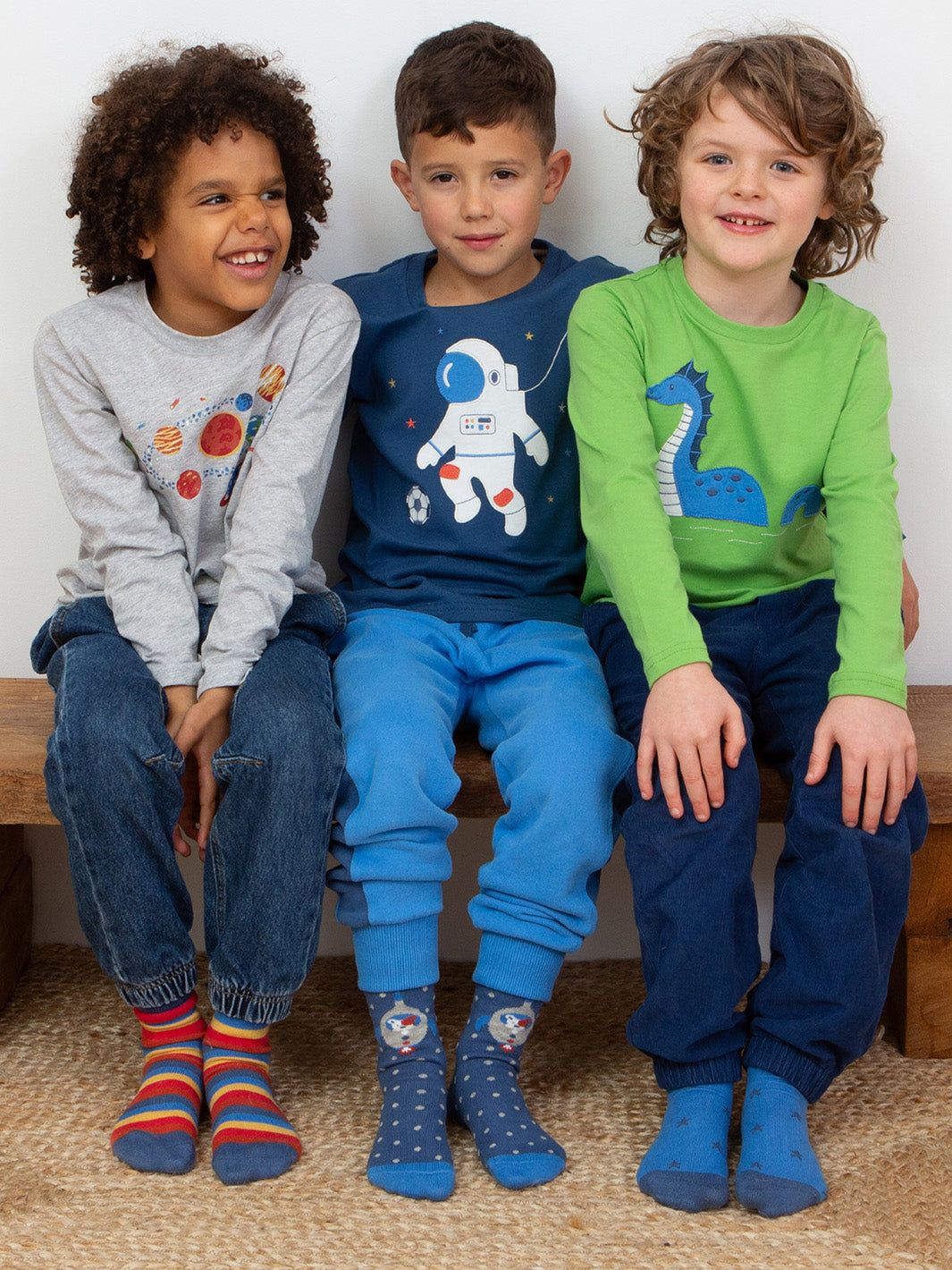 Discover these super-soft organic cotton socks in three different designs that coordinate perfectly with this season's collection. Choose from Space pup design, stars and colourful stripes. These gorgeous socks finish off any outfit and make a great gift idea too.